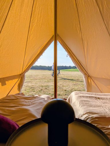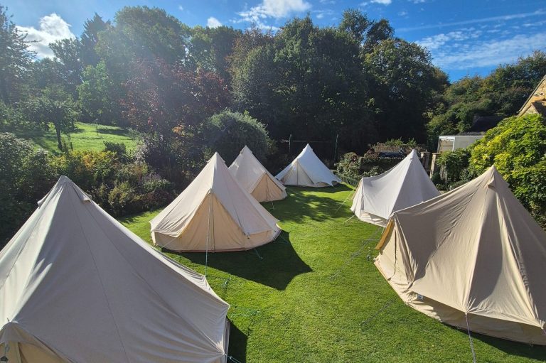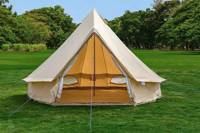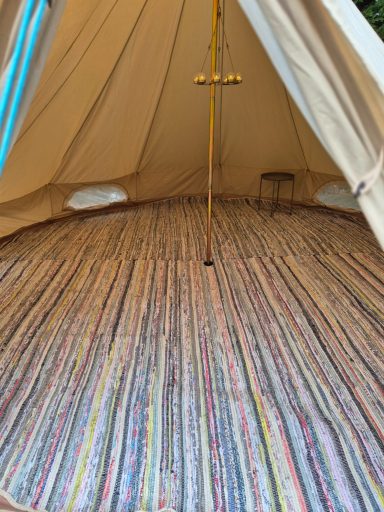 Here at Canopy, we offer camping comfort in one of our 4m or 5m recently purchased (summer 2025) Bell Tents. Each is made from quality professional standard 320 + grams per metre fabric. The 4m bell tents can cater for 3 - 4 adults (or a family of 4) and the 5m ones can cater for 5-6 adults (or a larger family).